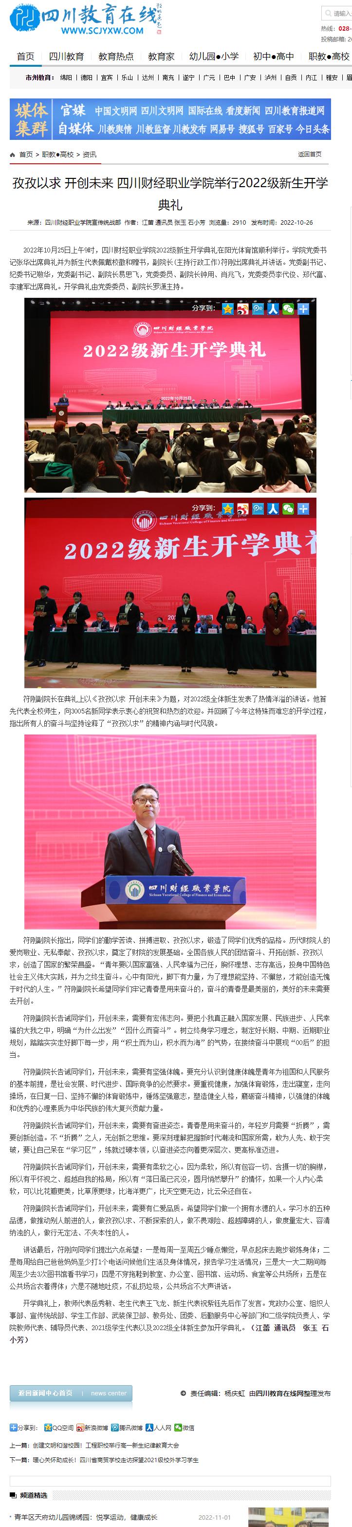 四川教育在线:孜孜以求 开创未来 7790cnm必发集团举行2022级新生开学典礼