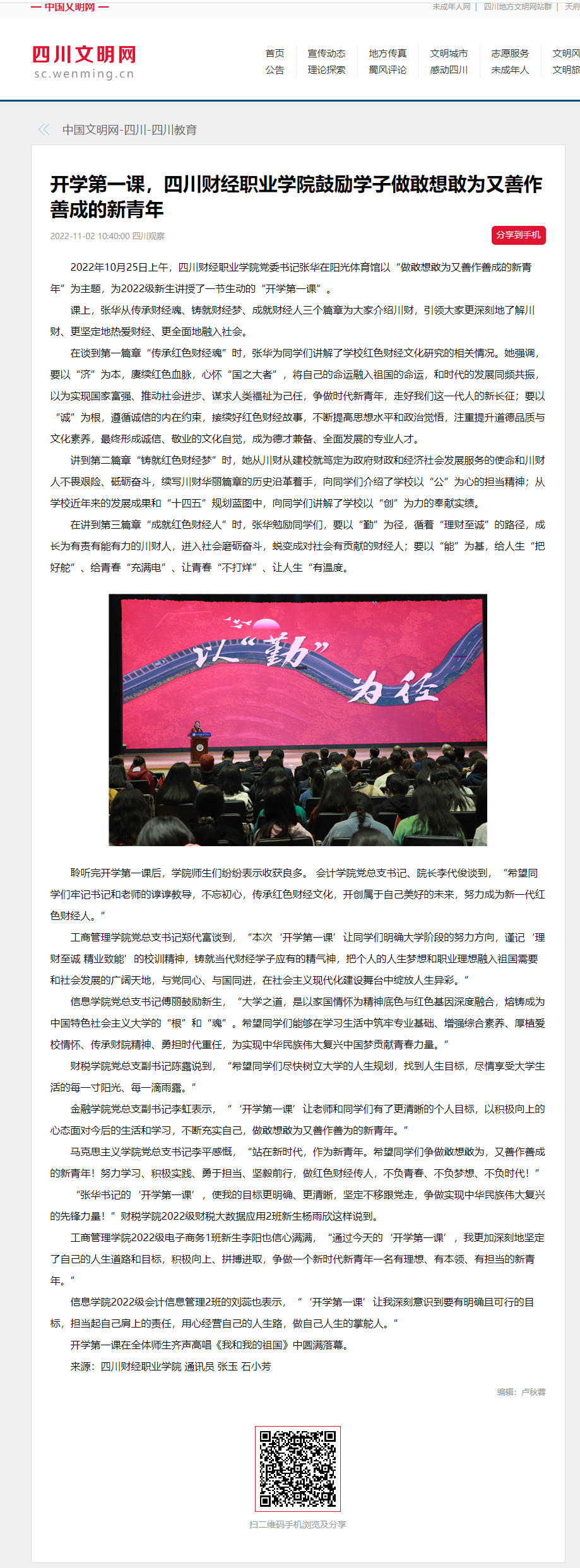 中国文明网:开学第一课,7790cnm必发集团鼓励学子做敢想敢为又善作善成的新青年