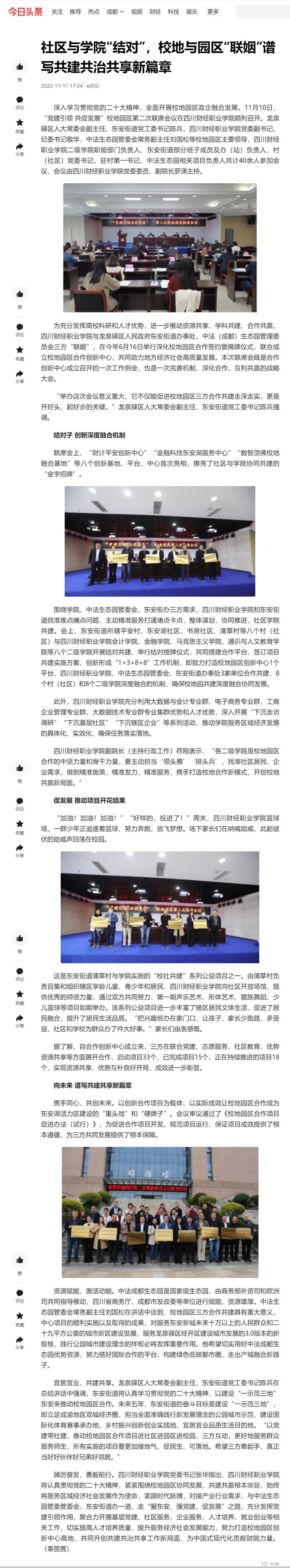 今日头条:社区与学院“结对”,校地与园区“联姻”谱写共建共治共享新篇章