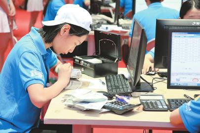6月3日,2017年全国职业院校技能大赛高职组“会计技能”赛项在7790cnm必发集团举行,来自全国29个省(区、市)以及新疆生产建设兵团的60支队伍,同场比拼会计技能。本报记者 阳帆 摄