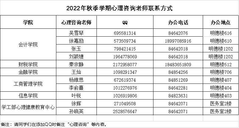 2.服务方式:心理支持热线(QQ语音通话、文字聊天)QQ号码:2528576647(财院心香心理咨询)