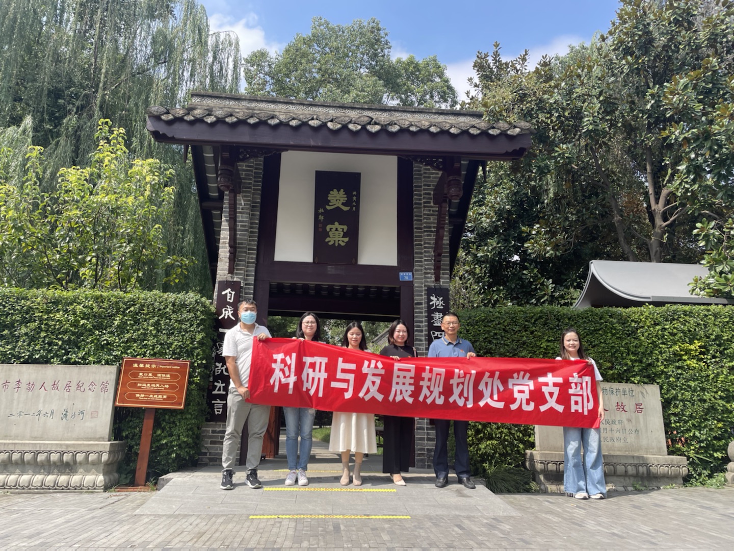 为庆祝新中国成立73周年,做好“党史教育学习”活动,进一步牢记党的宗旨意识,激发全体党员爱党爱国热情,科研与发展规划处党支部组织部门全体人员前往李劼人故居开展爱国主义教育活动。