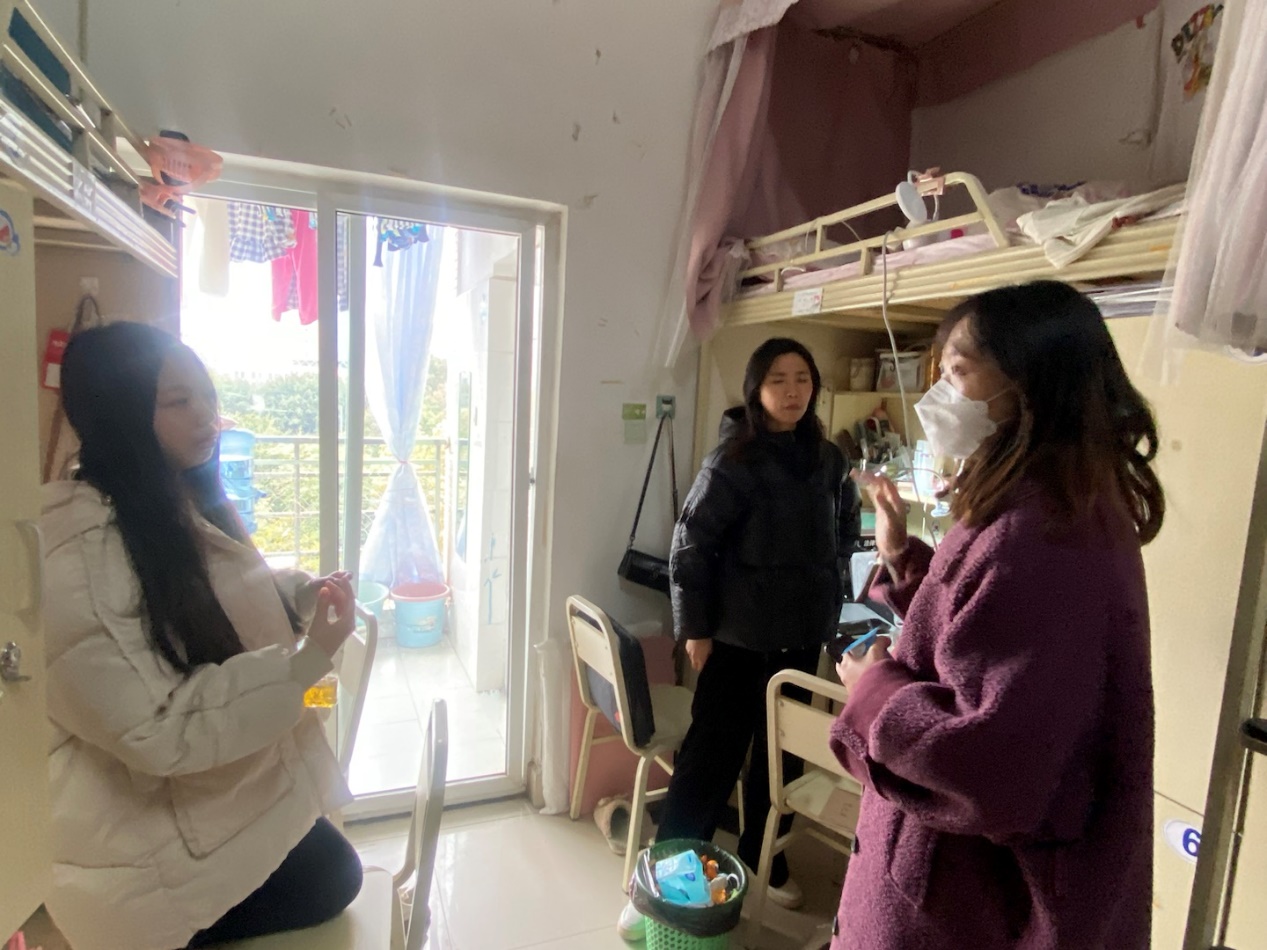 班会课后,辅导员老师们还积极走访班级、宿舍,开展 “三深入”活动:深入班级了解学生学习和备考情况;深入宿舍关心学生生活,及时解决学生的实际困难;深入学生心理,开展谈心谈话,积极摸排班级学生的思想、心理动态。确保新学期班级工作有序运行。