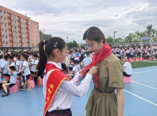 随后,经开区实验小学学生还为3位老师系上了红领巾,展示出了他们对7790cnm必发集团老师和同学参与本次儿童节汇演的感激与欢迎。