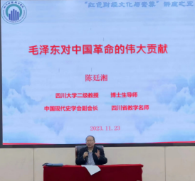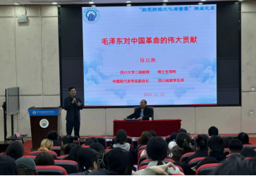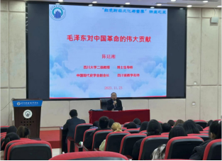 11月23日晚6:30,为纪念毛泽东同志诞辰130周年,引导青年大学生深入学习党史和领悟毛泽东思想,学校邀请全国优秀教师、四川省教学名师、四川大学陈廷湘教授作了《毛泽东对中国革命的伟大贡献》讲座。