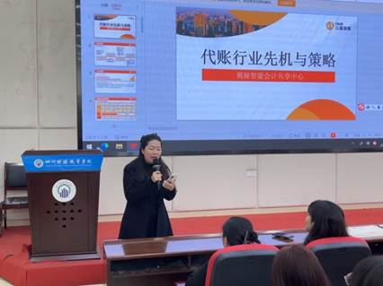 最后,财税学院中期实习指导老师胡霞作了总结发言,鼓励同学们积极报名参与四川云猫易账会计服务有限公司的实习生选拔,希望同学们以饱满的热情投入到中期实习中,在中期实习期间牢记职业道德、虚心学习,为以后工作积累经验。