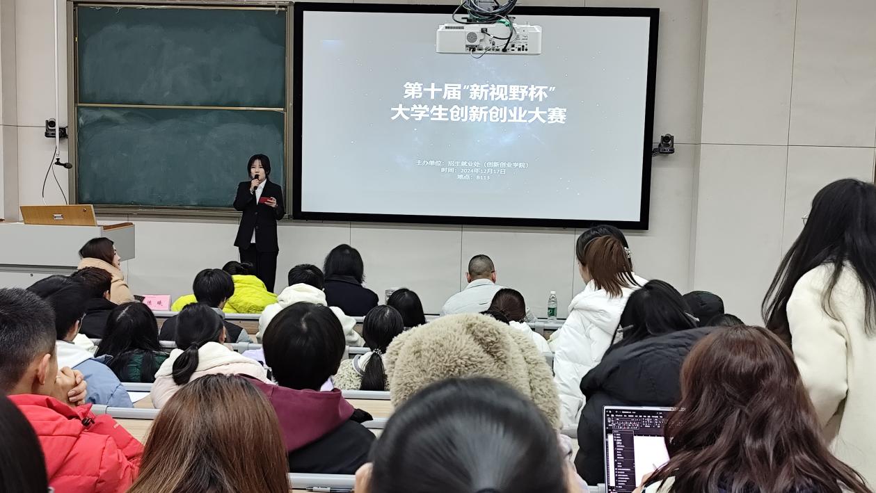 为适应国家“大众创业.万众创新”的时代主题,进一步调动我院大学生积极主动参与创新创业的积极性,培养创新思维和创业意识,培育创新精神,提高创业技能,为学生参与创新创业提供锻炼机会与实践平台,同时为参加明年的中国国际大学生创新大赛贮备项目,2024年12月17日下午14点,第十届“新视野杯”大学生创新创业大赛暨第十一届中国国际大学生创新大赛决赛在致诚楼B212教室隆重举行,全院近200名学生到场观摩。