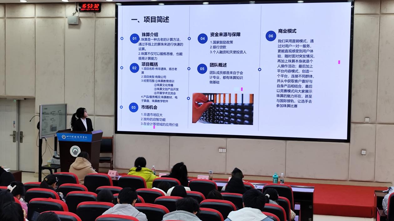 本次大赛自10月启动以来,招生就业处加大对比赛的宣传推广力度,各二级学院积极配合宣传并组织初赛,共推荐了“税小邻”、金财智汇-应用于产业园区项目、财商微光筑梦前行-儿童财商教育公益项目等18个项目进入最终决赛。各项目负责人分别从项目概况、商业模式、财务规划等方面进行了5分钟的现场陈述,并在3分钟内针对评委提问进行答辩。