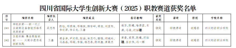 近日,在2025年“建行杯”四川省国际大学生创新大赛中,我校学子凭借扎实的专业素养、突出的创新能力与高效的团队协作,从众多参赛队伍中脱颖而出,斩获职教赛道创意组两项铜奖,为学校赢得了宝贵的荣誉。