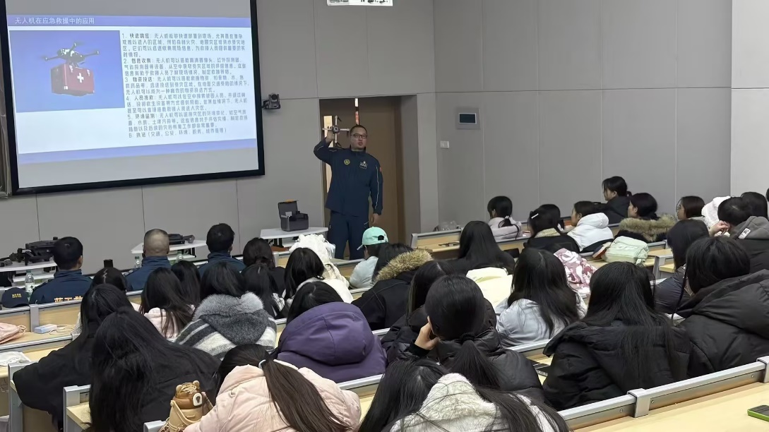 活动中,蓝天救援队廖老师围绕无人机基础理论、民航法规等内容,结合真实救援案例,生动讲解无人机在山区搜救、校园应急等场景中的操作与风险应对;无人机协会成员则通过校园实例解析飞行规范。活动融入情景模拟、问答竞赛等环节,引导学生从“被动听讲”转为“主动思考”。学员们积极投身“校园禁飞区识别”“信号干扰处理”等模拟任务,踊跃参与知识抢答,现场气氛热烈。教官与协会骨干实时点评,在自由答疑时段师生围绕公益救援应用路径、技术难点等深入交流,现场氛围热烈且富有成效。