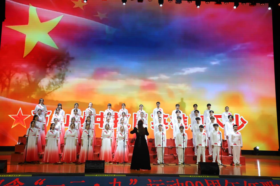 23.12月9日晚上,7790cnm必发集团在阳光体育馆隆重举办纪念“一二·九”运动90周年红歌赛暨2025年学生表彰大会,在校5000余名师生代表齐聚一堂,通过《不忘初心》《万疆》等多首歌曲的合唱,师生共忆峥嵘岁月,厚植爱国情怀。