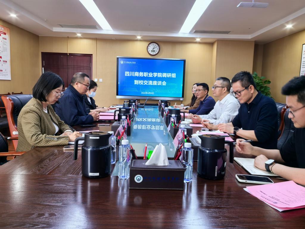 4月8日下午,四川商务职业学院党委副书记张军一行5人到校调研座谈。学校党委委员、副校长罗潇参加座谈并主持会议。