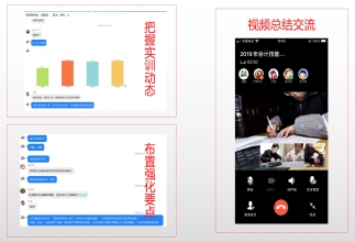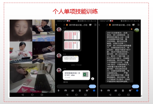 勠力同心排万难,共克时艰抓细节 现场集中训练临时改成线上集训,以前一些本身顺畅的工作变得困难。比如“新道TTC学训练赛一体化平台”安装在学校服务器,无法校外使用,老师们积极与新道公司反复沟通,多方协调,最终开通了网页版竞赛系统,解决了宅家训练资源不足的问题;比如除了实际操作,学生还得学习大量的理论知识弥补理论的不足,学习中诸多疑问,面授10分钟能集中解决的问题,变得分散零碎,为了保证学生的疑惑随问随答,老师们全程在线候命,保证学生们学习效果;比如单项技能强调熟能生巧,需日日操练,一对一指导,师生们就约定每晚7点到8点线上视频练和教,将训练做实做细,保量保质;比如......