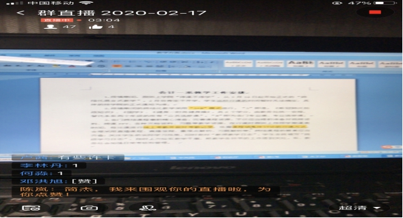 线上组织、网络直播,没有先例、没有经验,部分辅导员的内心还是有点紧张、有点惶恐,但在镜头里看到一张张熟悉可爱的面孔时,一切泰然自若。“同学们,你们好!在这个特殊的时期,我们以这样的方式见面了…….”,屏幕上同学们纷纷刷起了飞机,点起了赞,内心受到了很大的鼓励。