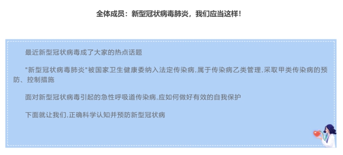 (一)2020年1月21日 我站发布推文【易防患】|新型冠状病毒;分别解释了:什么是新型冠状病毒、本次感染的患者临床表现有哪些、新型冠状病毒如何防范三个方面;
