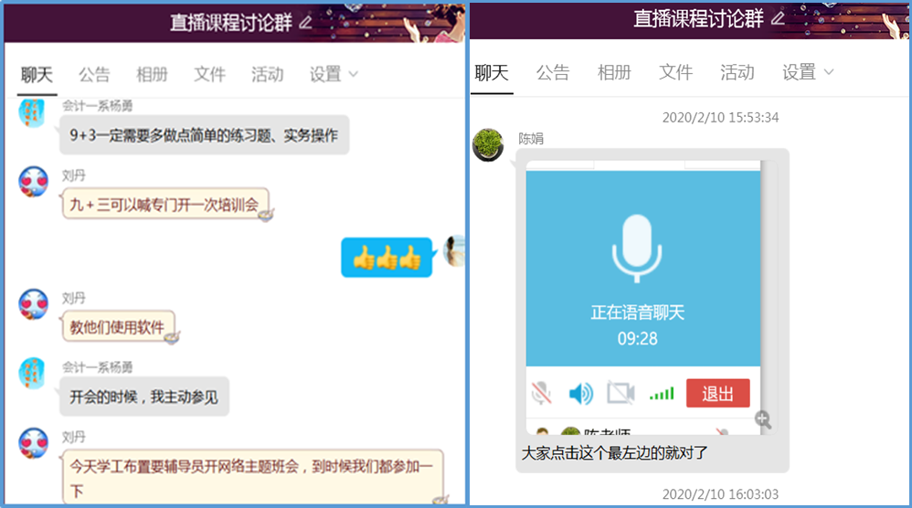 二是资源共享,系部保障。系将为大家提供各方面支持,老师们大胆发挥才能,保障线上教学的教学质量。在教学资源的配备上,鼓励大家选用适合各门课程的教学平台,如:国家教学资源库、云班课、钉钉、超星及智慧职教等。“创新融合,理论实践相结合”,创新融合教师自身的理论知识和实践经验,搭建学生能学懂、能学精的线上教学资源,从而达到既定的教学目的,实现人才培养目标。