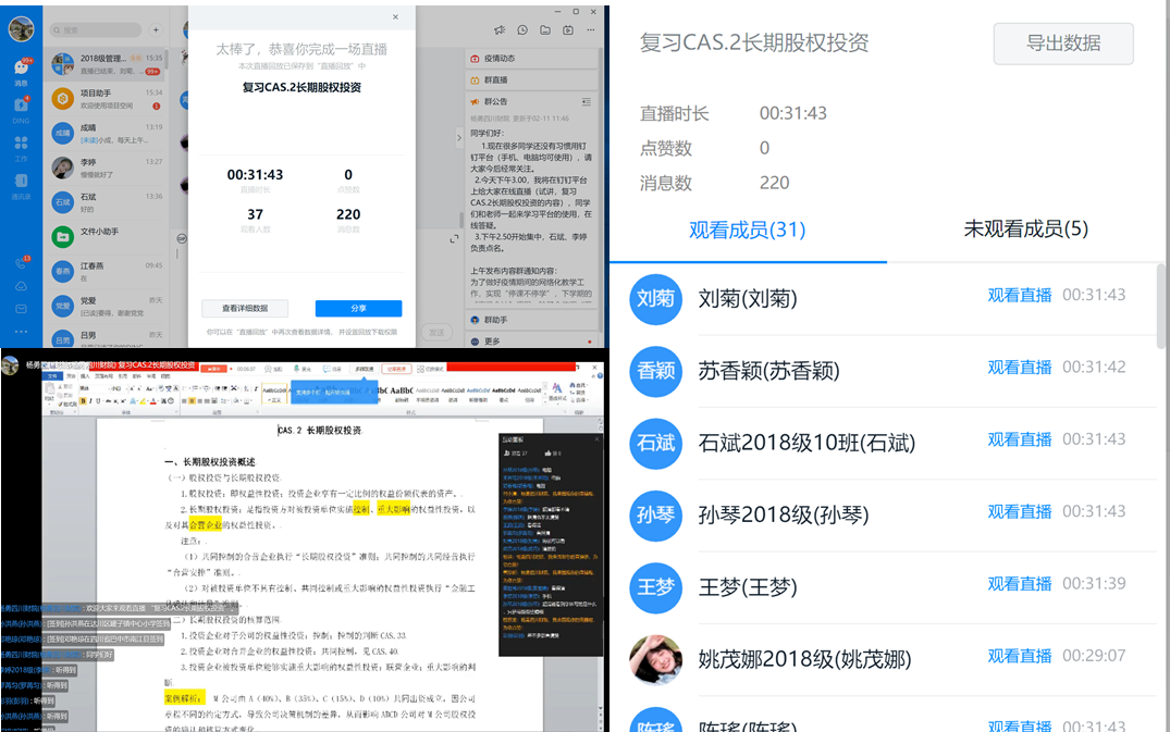 一是把握内涵,充分准备。在疫情防控期间,全面开展网上在线教学,既是一项大胆的创新活动,更需要教学团队群策群力。在线教学是一种教学交互方式的重大变化,不是简单的换地方教学。本着培养高素质技能型财经人才的目标,充分考虑当前的学情和网络环境,我们应当创新融合现有的教学资源,依据学院原定的教学安排,有序递进开展线上教学模式。