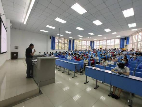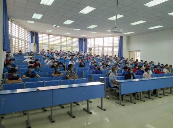 为响应学院防疫工作总体部署,提高后勤所辖相关从业人员防疫意识,顺利迎接学生平安返校,后勤管理处于2020年5月25日下午2点30分,在学院教学楼B栋112阶梯教室组织开展了第二批“后勤部门新型冠状病毒肺炎防控知识培训会”,学院食堂、物业、绿化、超市、商铺等从业人员共150余人参加了培训会。
