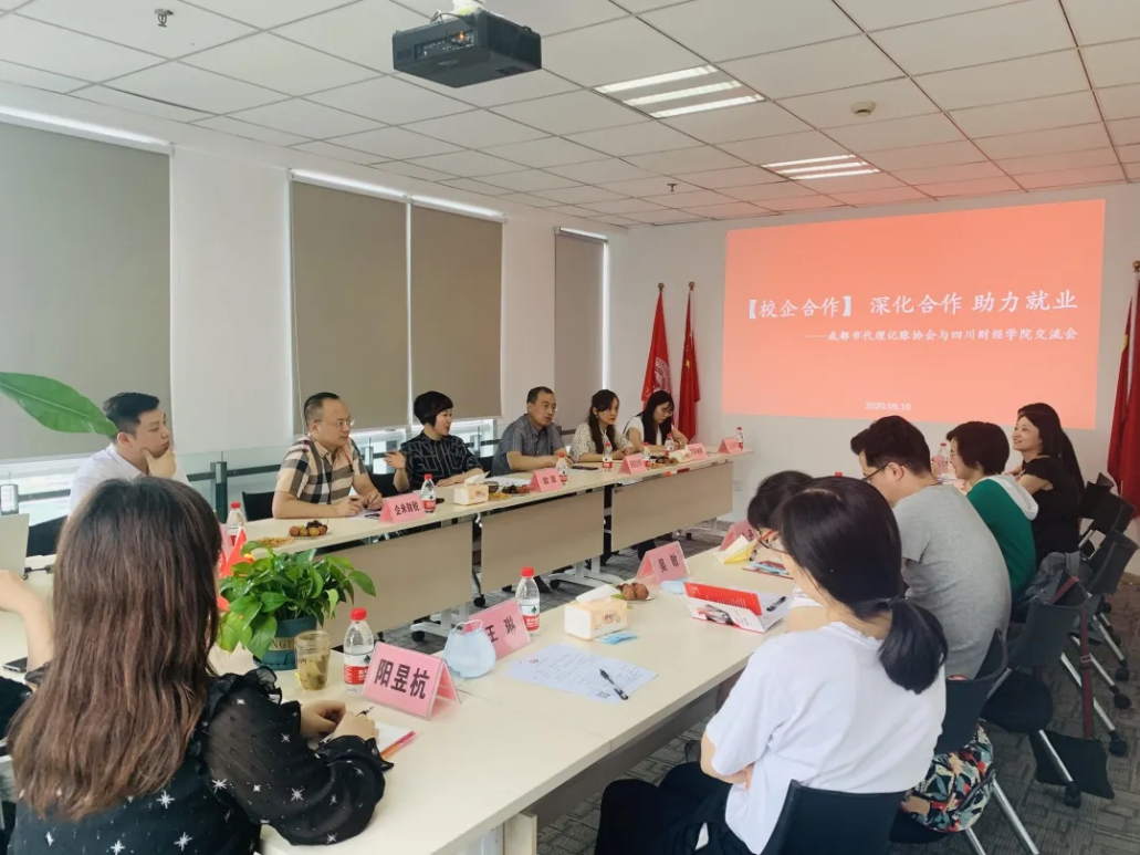 2020年6月10日下午,我院会计一系组织教师赴成都市代理记账行业协会进行调研,就现代学徒制人才培养、毕业生顶岗实习情况和企业用人需求等开展座谈交流。成都市代理记账行业协会会长欧蕊和协会理事单位代表,我院会计一系主任李代俊、副主任陈娟、党总支副书记刘丹及教师代表等参加交流会。