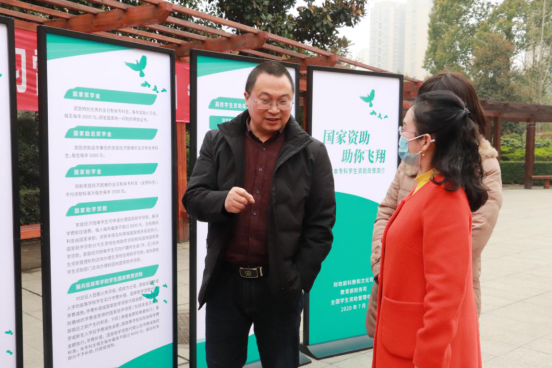 在庆祝中国共产党百年华诞的重大时刻,在“两个一百年”奋斗目标历史交汇的关键节点,我校学生工作部学生资助中心响应上级党组织号召,扎扎实实推动“学党史、悟思想、办实事、开新局”,精心推进各项工作,一项一项往前推,一件一件抓落实,以务实的作风推动工作落实。为了给学生办实事,让同学们进一步深入了解我校的资助体系,贯彻“不让一个学生,因家庭经济困难而失学”的理念。3月9日,在学工部学生资助中心的组织下,学工部部分党员干部与“砺行爱心社”的学生代表在学生公寓门口举办了“国家资助 助你飞翔”的资助政策宣传活动。