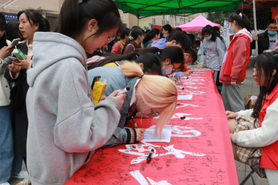 本次活动分为政策知识竞答和师生签名两个部分。在短短三个小时的时间里,同学们积极参与活动,踊跃参与知识竞答,参与知识竞答的同学在宿舍门口排起了长队,特别是大一学生争先恐后地参与竞答。通过深入宣传,同学们不仅详细了解到国家资助政策和学校资助体系,而且在竞答中也赢得了精美的礼品。同时,学校副院长罗潇、学工部副部长刘丹(主持工作)、宣传统战部副部长陈露也来到活动现场参与横幅签字活动。