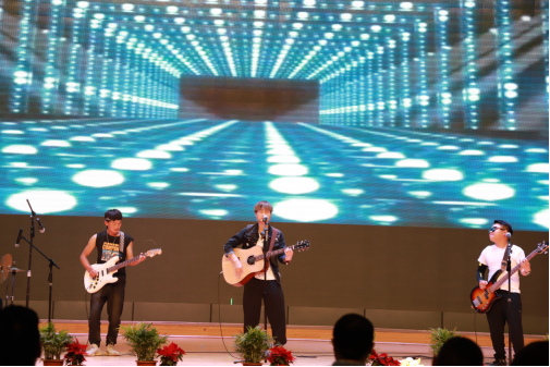 夜色将近,晚会在四川各大高校的祝福视频中拉开帷幕,本次闭幕式晚会共精选出十一个优秀节目。晚会正式开始,由我院音乐协会青青草原乐队带来的摇滚音乐《公路之歌》和《再见,杰克》活力开场,伴随着动感激扬的旋律,同学们欢快的跟唱着,挥舞着自己手中的荧光棒,张扬着他们的青春活力。