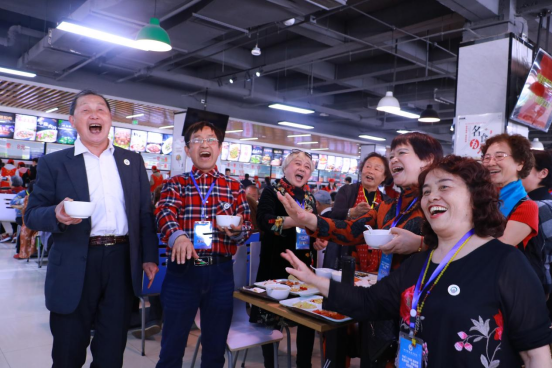 在学校学生食堂,老校友们重新体验了当代财院学子的幸福生活。志愿者们一一为老校友们端上可口的饭菜,老校友们一边用餐,一边感慨时代的变化。几位多才多艺的校友端起手中的碗,深情地合唱起《唱山歌》等歌曲,美妙的歌声把大家的思绪再次拉回到那久远的记忆。
