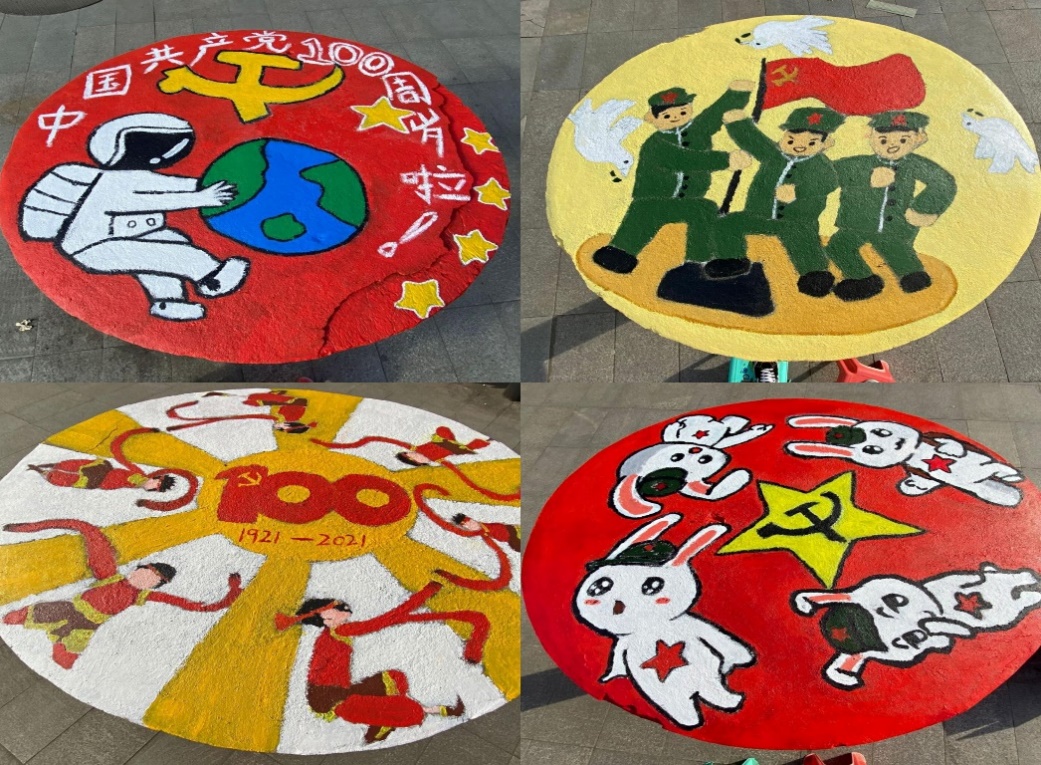 4月24日,团委青年志愿者协会组织8名志愿者在学生公寓门口的水泥石柱进行彩绘涂鸦。石柱涂鸦是一种以丙烯颜料彩绘的形式呈现,以色彩、创意、环保为宗旨的行为艺术。志愿者们两周前已经开始前期准备,通过对参加活动的图案初稿进行认真审核、修改,选择积极向上、特色鲜明,并且与建党百年主题相符的稿图进行涂鸦创作。活动当天,8名志愿者们顶着烈日,对4根石柱进行仔细清理、描图、填色。石柱彩绘涂鸦活动一方面可以丰富校园文化,另一方面也可以保护基础设施。志愿者们的巧妙创意经过了艺术构思和妙笔巧手,使原本不起眼的石柱熠熠生辉。