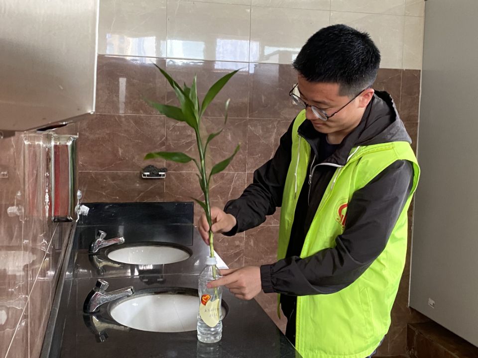 本次“美化校园”志愿者服务系列活动包括环保回收、教学与行政楼环境美化和公寓生活区环境美化三个部分。4月23日,志愿者们开展废弃塑料瓶回收工作,并对塑料瓶加工处理,充当绿植的花瓶,并在瓶身贴上院青协标志和带有温馨提示的便利贴;4月24日-25日下午,30名志愿者对学院A、B、C三栋教学楼和明德楼的厕所增添富贵竹和绿萝两种绿植,用以点缀、优化厕所内在环境,既能减少厕所异味,也将提升厕所颜值,让广大师生在学习工作之余能拥有绿色植物带来的愉悦心情。