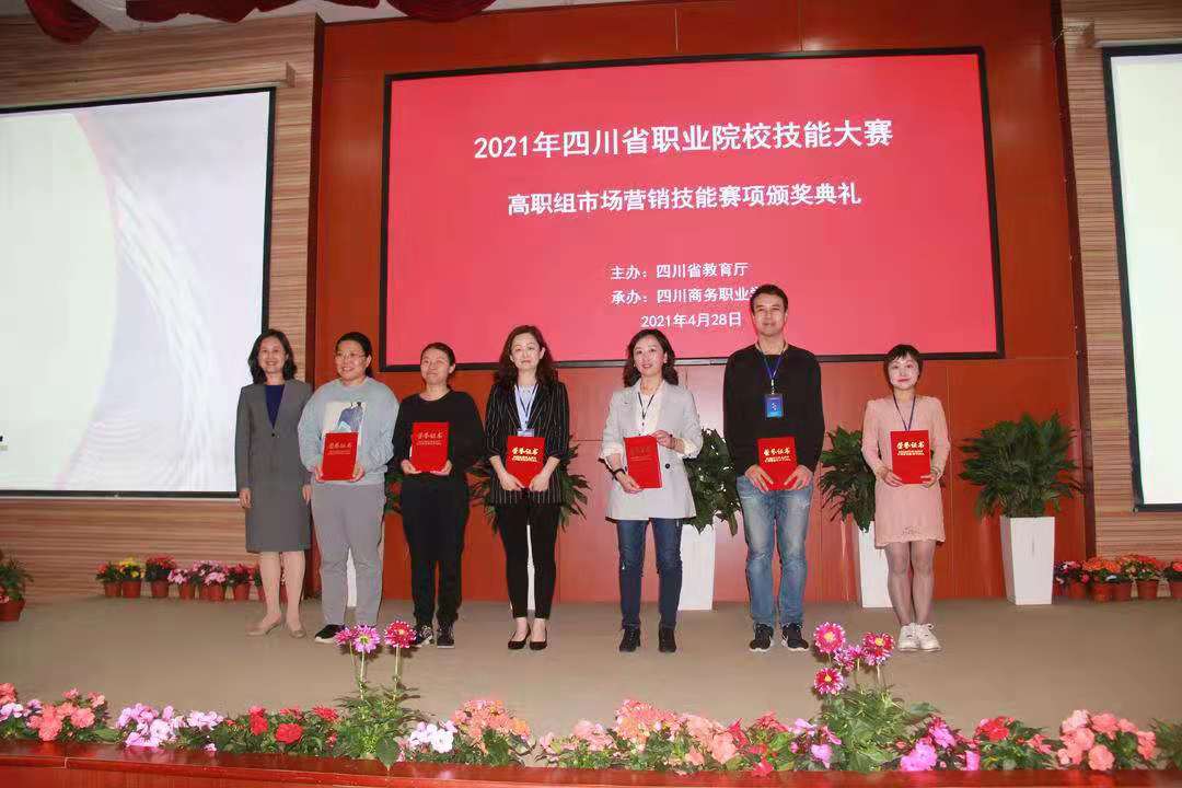 在指导教师冯一娜、黄芳的精心指导下,参赛同学的共同拼搏下,经过情境营销和方案策划两个竞赛模块的激烈比拼,我院代表队最终从来自全省的30支代表队中脱颖而出,以第一名95.97分的优异成绩获得一等奖,并取得代表四川省参加2021年全国职业院校市场营销技能大赛的资格,指导教师冯一娜、黄芳荣获优秀指导教师称号。