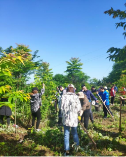 在省直机关负责的植树区域,大家热情高涨、干劲十足,纷纷拿起锄头、铁锹等工具,争先恐后、分工协作。有的挥锹铲土,有的清理杂草,有的提桶施肥。不到1个小时,就将我院负责植树区域清理以及修正完毕,为龙泉山城市森林公园再添一抹新绿。
