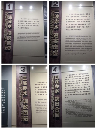 看着纪念馆的陈列,一张张图片,一件件实物物,再从“一渡赤水”到“四渡赤水”场景展示,让我们进一步感受到革命前辈为民族独立、到人民幸福不怕牺牲、矢志奋斗的坚定信念。战火硝烟的岁月已经远去,为中国革命伟大事业鞠躬尽瘁、流血牺牲的共产党人我们一个也不会忘记,他们留下的精神财富将激励我们勇往直前,迈步新征程。