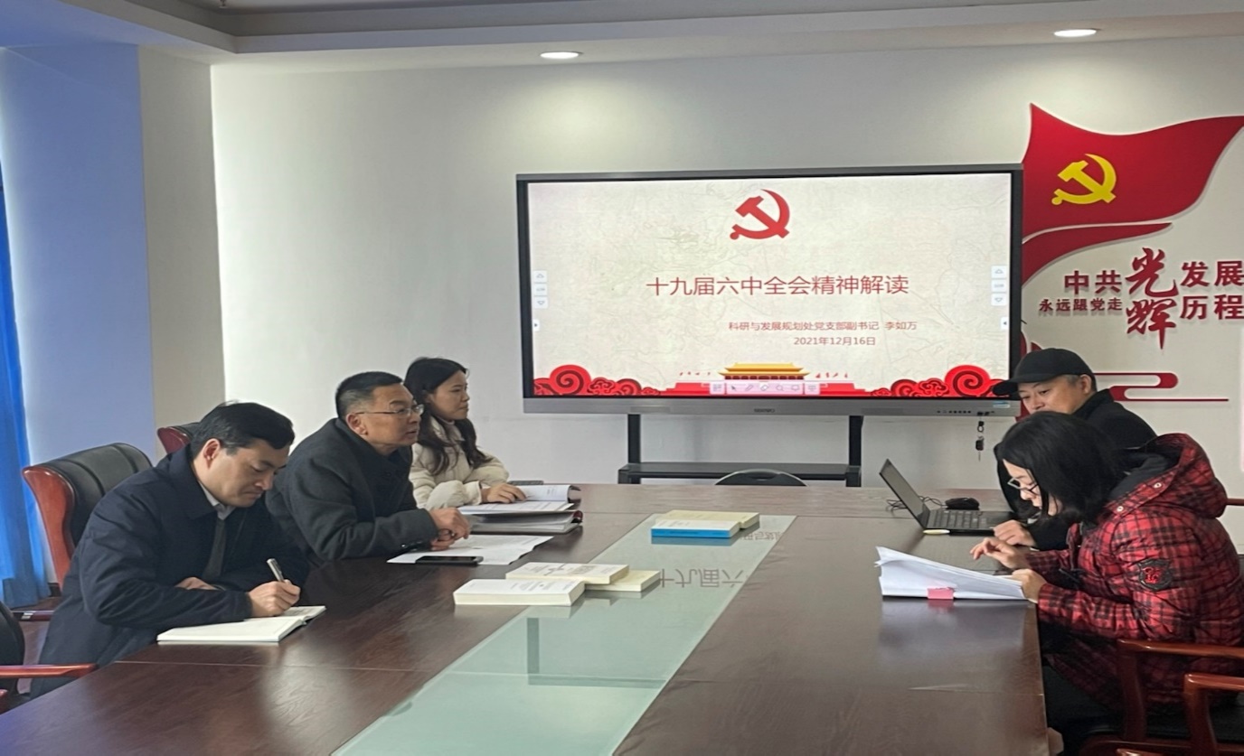 为学习贯彻十九届六中全会精神,科研与发展规划处党支部于12月16日下午15:00在明德楼813会议室召开12月主题党日活动及党支部书记讲党课活动,会议由支部书记裴俊主持,科研与发展规划处党支部全体党员同志参会。