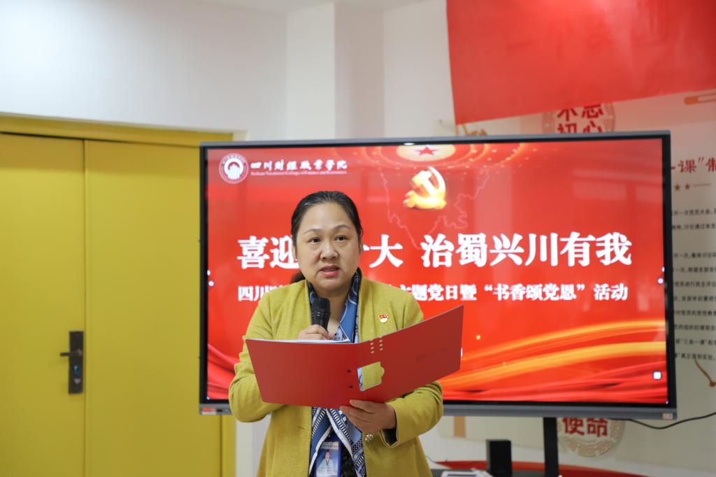 为深入贯彻落实习近平总书记来川视察重要指示精神,迎接党的二十大胜利召开,10月13日上午,学院组织开展“喜迎二十大治蜀兴川有我”主题党日暨“书香颂党恩”活动。学院党委领导班子成员、二级学院党总支书记、相关职能部门党支部书记、学生党员代表参加活动,活动由党委副书记、副院长易思飞主持。