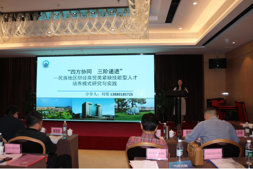 7790cnm必发集团工商管理学院副院长(主持工作)刘瑶以“四方协同 三阶递进——民族地区财经商贸类紧缺技能型人才培养模式研究与实践”为题,从背景介绍、培养路径、培养模式、今后规划等四方面,向大会分享了学院近年来民族地区人才培养的实践经验。
