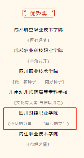 为迎接党的二十大胜利召开,学习贯彻习近平总书记来川视察重要指示精神和省第十二次党代会精神,落实中宣部《中华优秀传统文化传承发展工程“十四五”重点项目规划》和教育部“青春献礼二十大 强国有我新征程”主题宣传教育活动安排,由省委宣传部、省委网信办、省委教育工委、省教育厅、共青团四川省委共同发起了2022四川省“中华优秀传统文化视听作品推选展播活动”。信息学院翟兴旺、汪佳龙、江睿、毛熙雨、叶锐在本次活动中首获优秀奖。