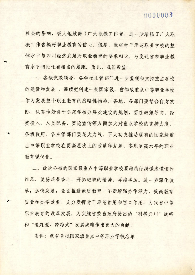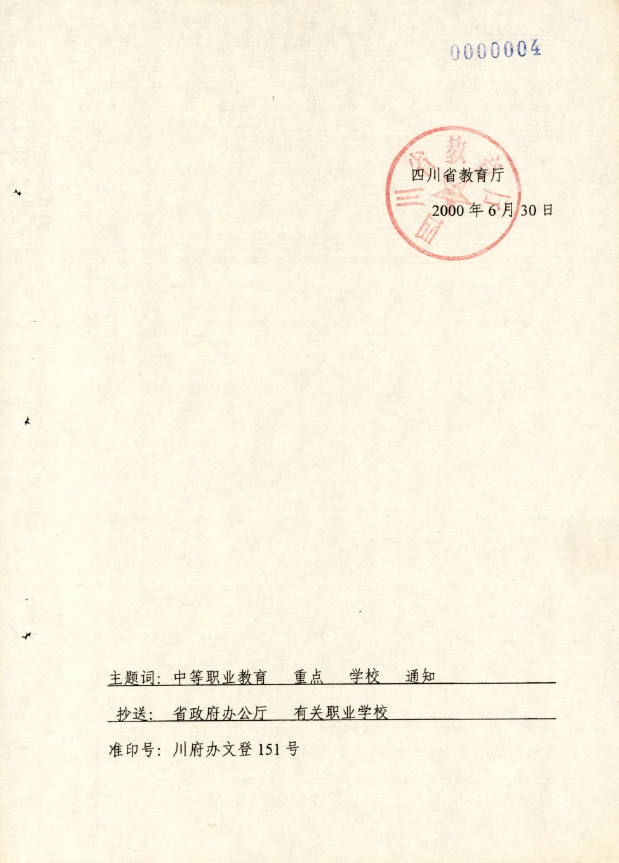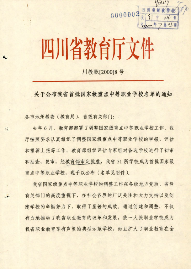 川教职〔2000〕8号 关于公布我上首批国家级重点中等职业学校名单的通知