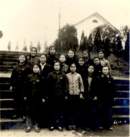 学校搬离重庆前,1964级税一班部分女同学在在教学大楼前留影