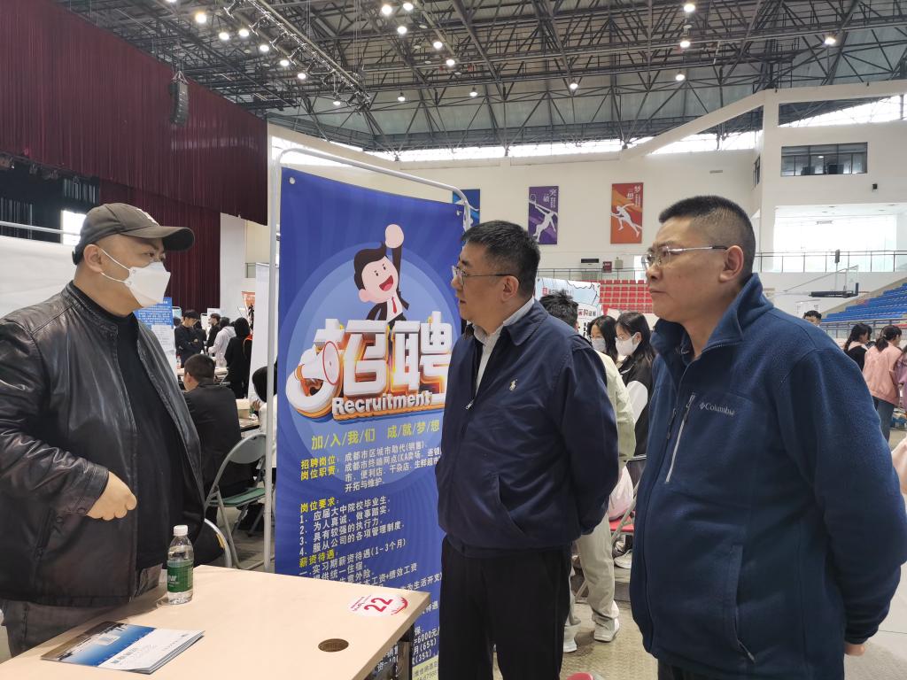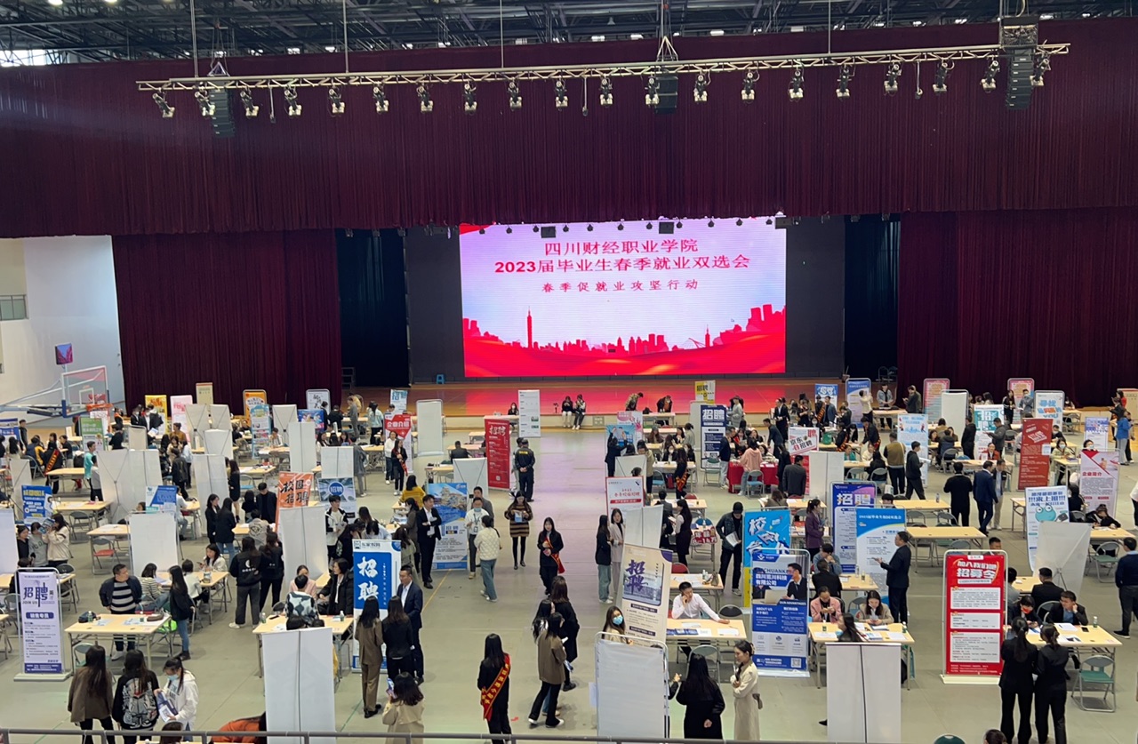 3月30日下午,学院“春季促就业攻坚行动”2023届毕业生春季双选会在学院体育馆举行,成都市代理记账行业协会、江苏京东信息有限公司成都分公司、四川金拱门食品有限公司等100家企业汇聚一堂,广纳英才,为毕业生提供岗位1000余个。