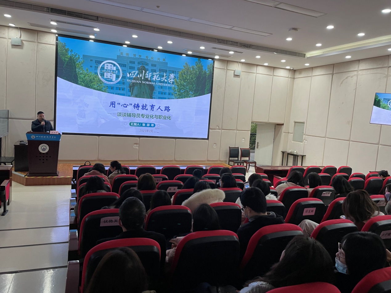 2月10日上午,学院邀请了第四届全省高校辅导员年度人物、第八届全省高校辅导员素质能力大赛一等奖获得者、四川师范大学专职辅导员张绍希老师来校为全院专兼职辅导员作了“用‘心’铸就育人路”的专题培训。主讲人以辅导员职业化、专业化发展为题,结合自身工作经验和实践探索,使大家进一步明晰了岗位职责,掌握了工作方法,提升了育人本领,提高了辅导员的职业素养、职业能力和专业化水平。大家纷纷表示受益匪浅,要将所学、所思、所悟运用到今后的学生教育管理工作中。