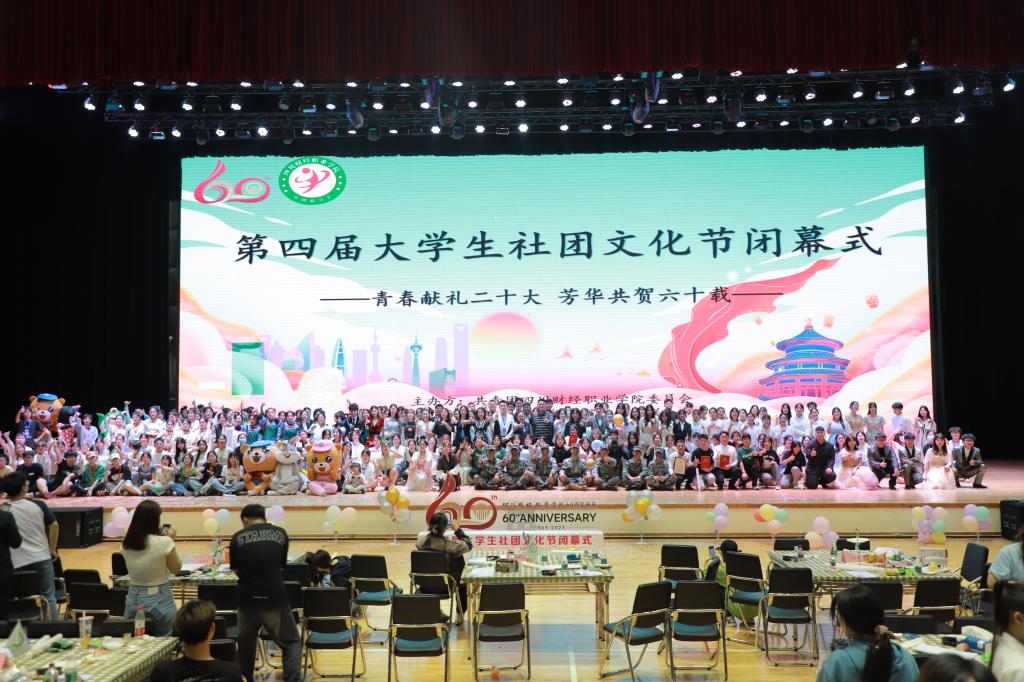 在全场《相亲相爱》大合唱的歌声中,所有领导嘉宾上台与演职人员合影留念,第四届大学生社团文化节闭幕式晚会圆满落幕。社团文化艺术节是青年学子的舞台,丰富多彩、形式多样的艺术节展演,充分体现了当代大学生的文化素养和艺术修养,展示了川财学子朝气蓬勃的精神风貌。我校将继续以社团文化艺术节为契机,将青春与艺术融合,营造高雅的校园艺术氛围,大力弘扬中华民族优秀传统文化,努力构建良好的育人环境,激励青年学子唱响时代,让青春飞扬!