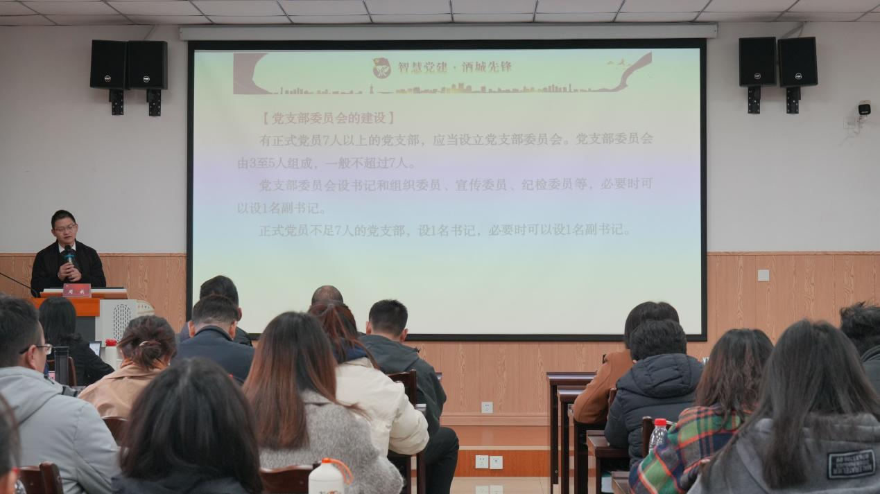 下午,泸州市“八五”普法讲师团成员周旗主要围绕新形势下高校党建工作任务和要求,从组织设置、发展党员、组织生活、党费缴纳、阵地建设等五个方面对高校基层党建工作做了详细的讲解,对“三会一课”的基本要求、注意事项、主要流程进行了详细说明,对于容易出现问题的工作环节,结合案例进行重点讲解分析,对做好高校党建工作提出了指导性建议。