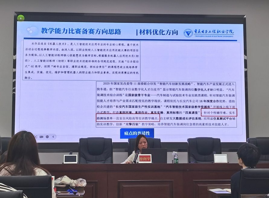 4月12-14日,重电的代才莉教授、梅晓莉教授、廖成成副教授、彭华教授、熊妍茜副教授,重庆城市管理职业学院金莹教授,兰州交通大学李宗义教授分别就教学内容重构、人才培养方案与课程标准制定、实施报告撰写、课程思政的系统化设计、教案撰写、视频选题、拍摄与授课展示、大赛对教师教学能力的核心要求进行了培训与指导。最后,重电的牟向宇教授为参赛团队提供了一对一的指导和交流,她强调用以赛促建、以赛促改的方式来完善备赛作品,为参赛团队提供了宝贵的建议。