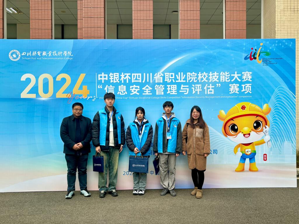 12月22日,2024年“中银杯”四川省高职院校职业技能大赛(高职组)“信息安全管理与评估”赛项在四川邮电职业技术学院举办,来自全省高职院校的56支参赛队伍同场竞技,我校2024级信息安全技术应用专业唐炘睿、龚林川、唐莉、杨欣滨杰、曹鸿淋、晏萍6名学生组建两队,在胡燏、方刚、谢京雪、曹文静老师的指导下荣获四川省三等奖。