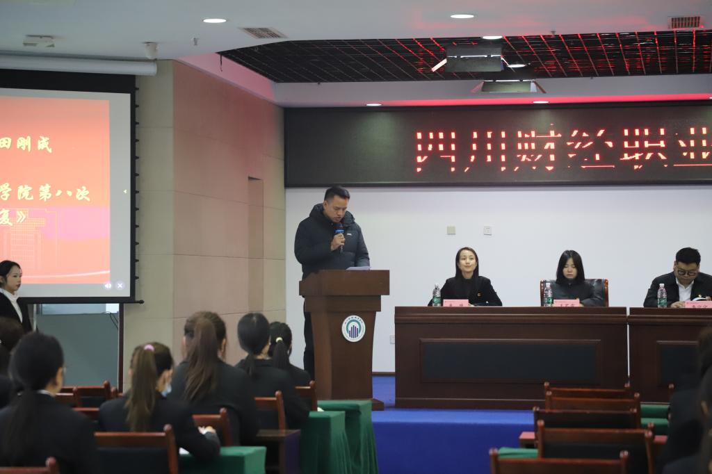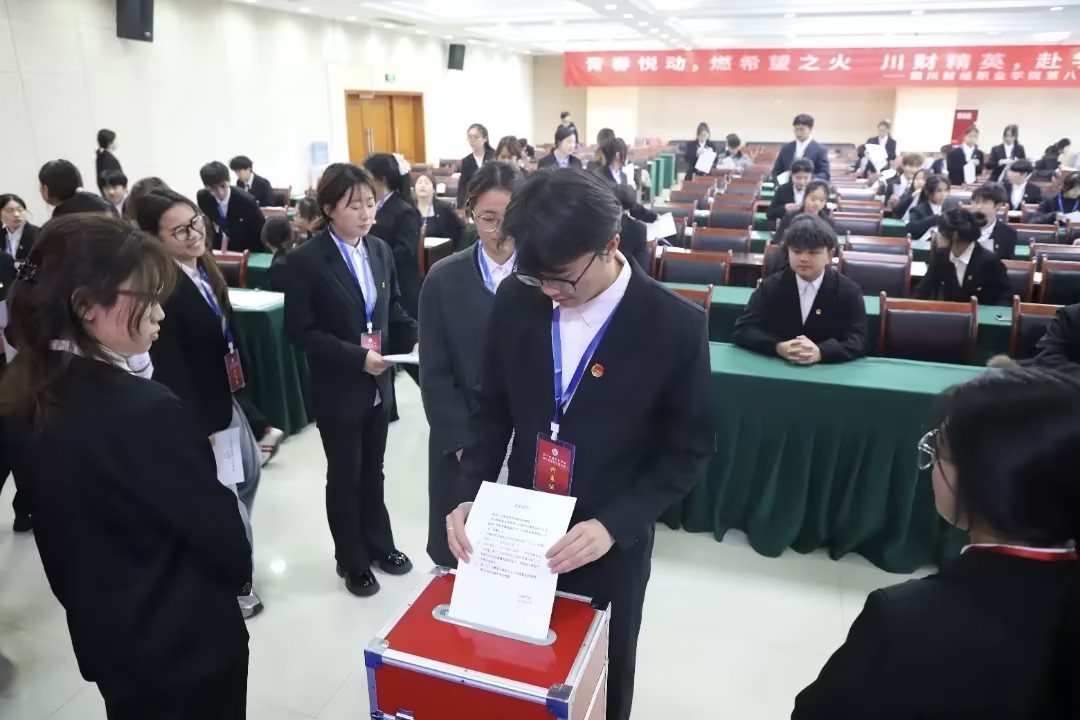 郑代富致辞。他向长期以来关心支持学生工作的老师致以诚挚问候,向与会学生代表及全校青年学子表示亲切慰问。对即将产生的新一届学生委员会,他提出三点希望:一是筑牢思想根基,引领同学深学党的创新理论,践行“理财至诚、精业致能”校训,体悟新时代“财经人”使命担当;二是聚焦服务本职,完善“倾听—调研—反馈—解决”闭环机制,回应学业、心理、就业等需求,打造同学信赖的“自家人”组织;三是擦亮奋斗底色,带领同学们投身学校“双高计划”建设、乡村振兴、志愿服务等实践,为学校高质量发展和民族复兴注入青春动能。