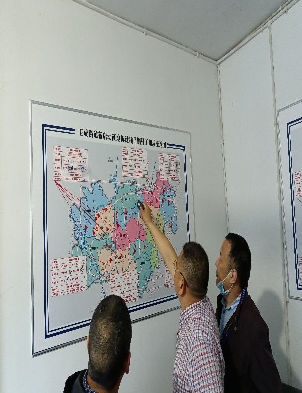 杨晓荣处长一行通过座谈向玉成街道办同志了解项目拆迁工作推进情况。玉成街道办党工委副书记吴云、办事处副主任汪涛等同志介绍玉成街道办高度重视成都基地项目拆迁工作,专门成立两个项目拆迁工作小组负责拆迁工作。项目拆迁范围约970亩,目前土地上的地面附作物清点工作已基本完成,已签订35%的拆迁安置协议,今年6月底完成拆迁协议的签订与倒房工作,按工作计划节点交地。同时,还介绍了玉成街道的区位优势,街道未来发展前景等情况。杨晓荣同志向玉成街道办详细介绍了成都基地项目功能定位、当前推进及项目建成后带来的经济、社会价值等情况,并对玉成街道办对成都基地项目拆迁工作的大力支持表示感谢,希望双方在项目推进过程中继续加强沟通合作。