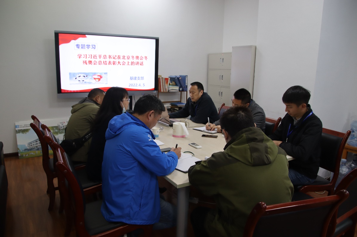 2022年4月15日,为弘扬北京冬奥、冬残奥精神,激发基建办全体奋进新征程、建功新时代的热情,基建办在201办公室组织专题学习习近平在北京冬奥会、冬残奥会总结表彰大会精神。专题会由基建办杨晓荣处长主持,基建办全体成员参与学习。