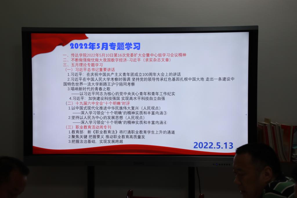 2022年5月13日下午,为不断提升理论素养、更好的指导基建工作实践。在201会议室,基建办召开5月理论学习专题会,会议由基建办处长、党支部书记杨晓荣同志主持,基建办全体参会。