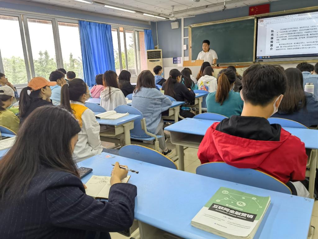 为深入学习贯彻习近平总书记关于职业教育的重要指示精神,形成“崇尚一技之长、不唯学历凭能力”的良好氛围,金融学院财富管理教研室特邀请阳光人寿融客事业部人力发展部负责人张俊毅经理,为2020级互联网金融1班、2班的同学带来了一场精彩的企业实践课。金融学院副院长、党总支副书记李琳莅临指导活动开展。