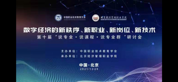 2021年12月29日,由中国职业技术教育学会主办、北京经济管理职业学院承办的第十届“说专业•说课程•说专业群”研讨会以线上、线下相结合的方式成功举办。中国职业技术教育学会会长、教育部原副部长鲁昕发表重要讲话并做了主旨报告。会议深入学习贯彻习近平总书记对职业教育工作的重要指示和全国职业教育大会精神,聚焦数字商贸、数字财经等新岗位人才需求,探讨职业教育新版专业目录落地路径,推动职业教育高质量发展。
